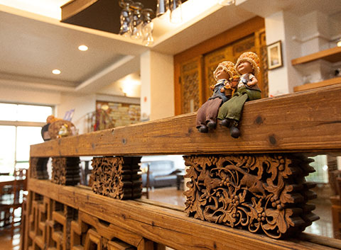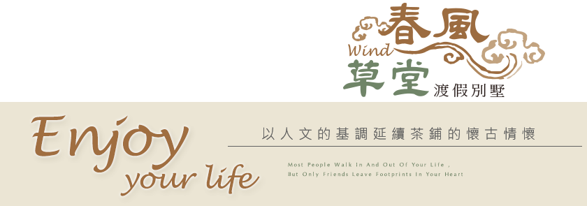 美得不像話的藍天下,金黃一片的稻田旁,春風草堂渡假民宿坐落於此。宜人的庭園環境、舒適寬敞的客房空間,民宿特有的中國風建築特色,給您獨一無二的住宿感受;外牆上的一首詩、大門上的獅頭門環、木製的桌椅、門窗…古樸的風格以此展現,與內部現代的裝潢風格彼此揉合著;每一處都值得您細細品味,尤其是木製門窗上的雕飾、雕花,是對中國風格最細緻的呈現,喜歡古風與木頭的您,一定不要錯過!